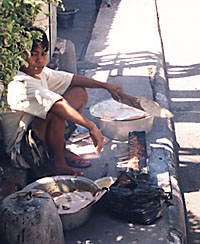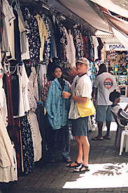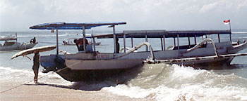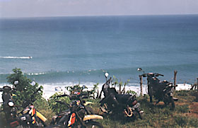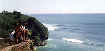 We had to experience Kutia, Legian, Sanur, the tourist centres where East meets and tries to accommodate the West before heading out to where the West is baffled by the intransient ancient East. The real Bali is out there - just beyond the flashing tourist traps. An hour's Beemo ride south around the Bukit Peninsula and you're in the heart of world-class surf spots. Vistas of peeling lines abound from cliff-top vantage points. Take a surf map, bargain for a Beemo and driver, and for 90 000 to 100 000 Rupiah per day, depending of distance and number of passengers, be driven to your desires. It's cheap at 1300 Rupiah to the Rand and you avoid the hassles of getting lost, arguing with corrupt police over traffic fines, and kamikazes en mass!