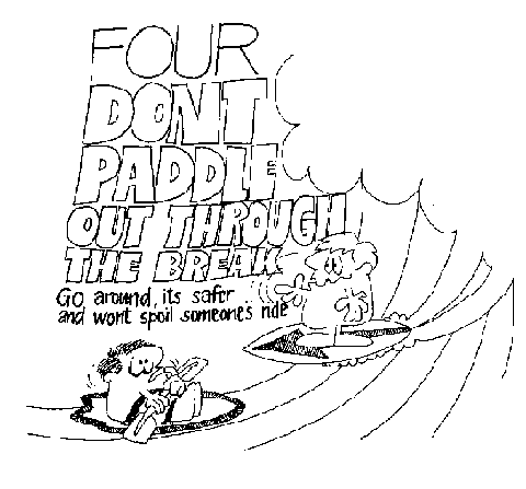 Don't paddle out through the break! - Go round, it's safer and won't spoil any rides.