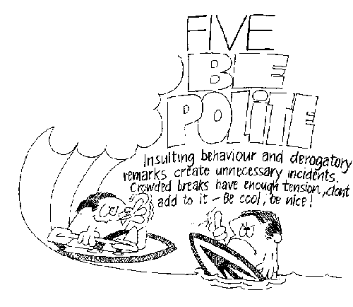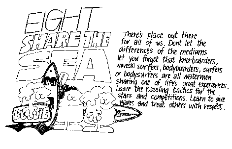 Don't hog waves! - Riding each and every wave in a crowded break is bad manners.